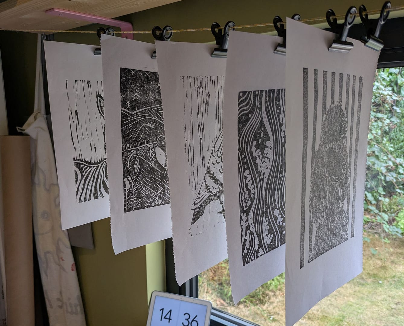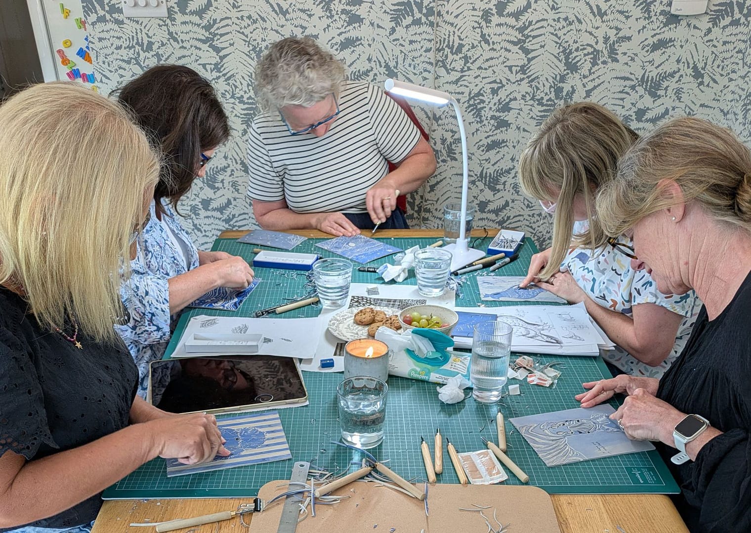 Come and join me for a fun, relaxing day of lino printing in a small group of 4 in my home and studio in Maidenhead, Berkshire. No art background or printing experience is needed.